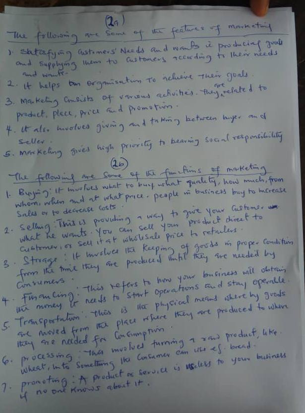 (2B)(i) Buying: It involves what to buy, what quality, how much, from whom, when and at what price. People in business buy to increase sales or decrease cost.