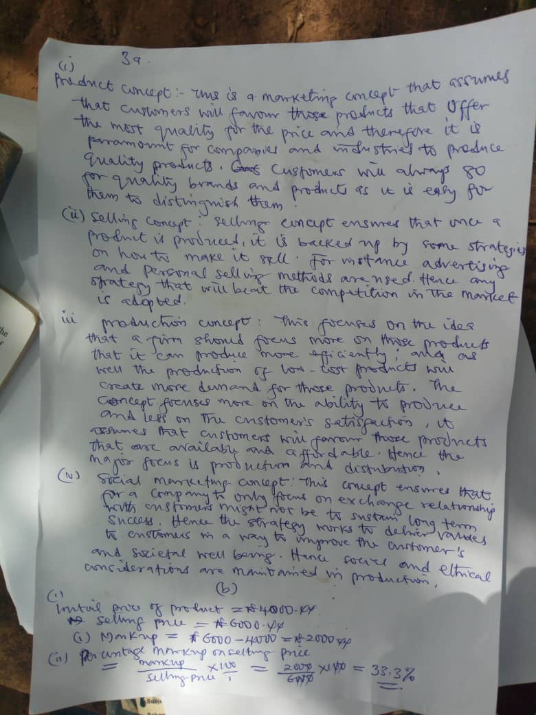 (ii) Selling concept: Selling concept ensures that once a product is produced, it is backed up by some strategies on how to make it sell. For instance advertising and personal selling methods are used hence any strategy that will beat the competition in the market is adopted.
